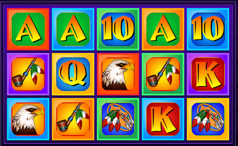 A, K, Q, J, 10, 독수리, 토템, 드림캐처 등 테마 심볼이 릴마다 등장하며,